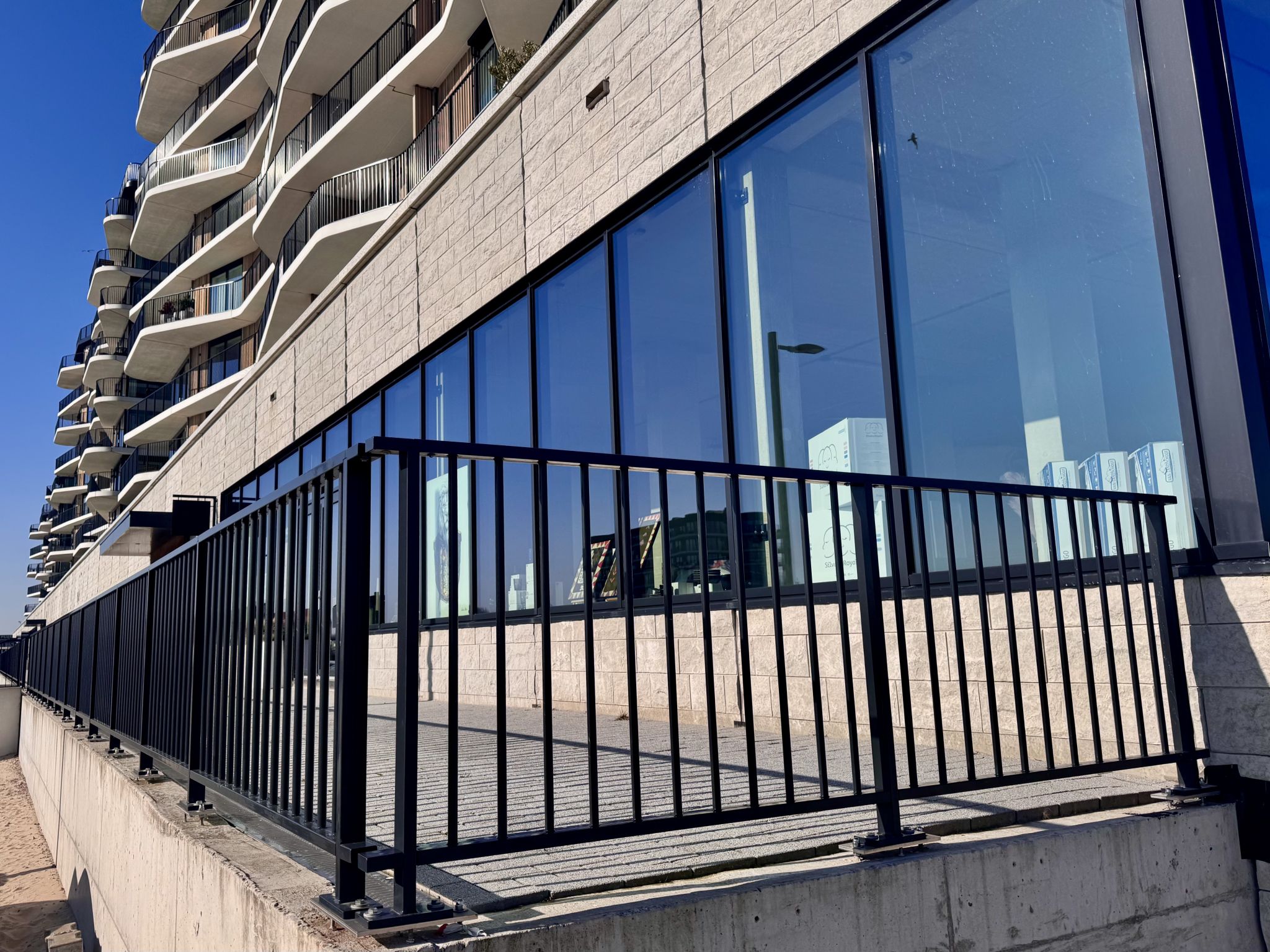 Afgelopen jaar hebben wij aan de buitenzijde – voorlangs de volledige bebouwing – een balustrade gerealiseerd van maar liefst 200 meter lang. Een maatwerkconstructie in gepoedercoat staal, waarbij uitstraling, veiligheid en duurzaamheid samenkomen.